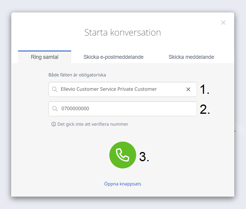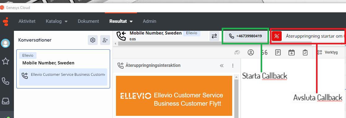 Det går även att klicka då på "mobilnumret" för att starta Callbacken direkt.