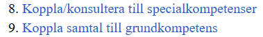 Vill man härifrån koppla/konsultera, se punkt 8 och 9 i rutinen.