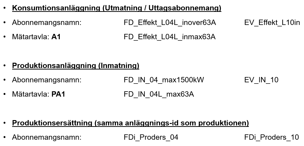 • Finns flera produktionsanläggningar så kan produktionsersättningarna samfaktureras.