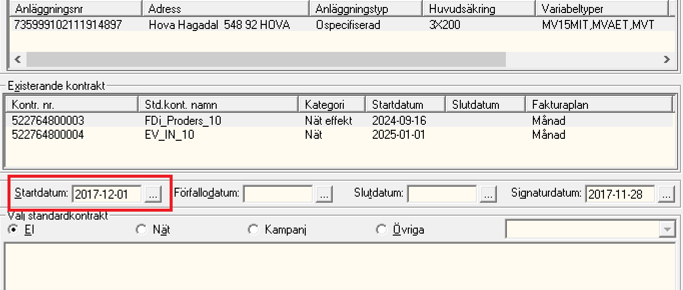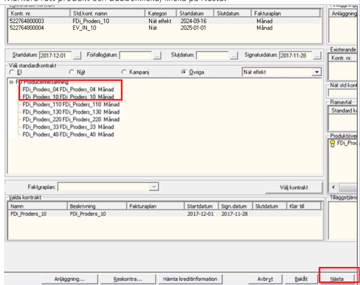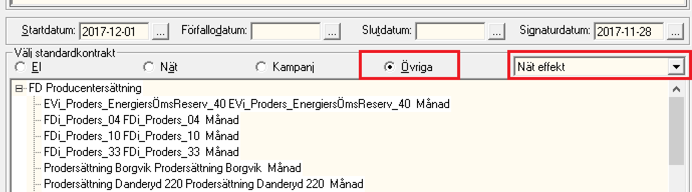 Välj standardkontrakt: "Övriga" och sen "Nät effekt i rullistan.