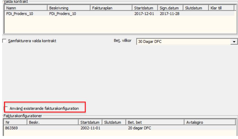 Säkerställ att rutan "Använd existerande fakturakonfiguration" inte är ibockad.