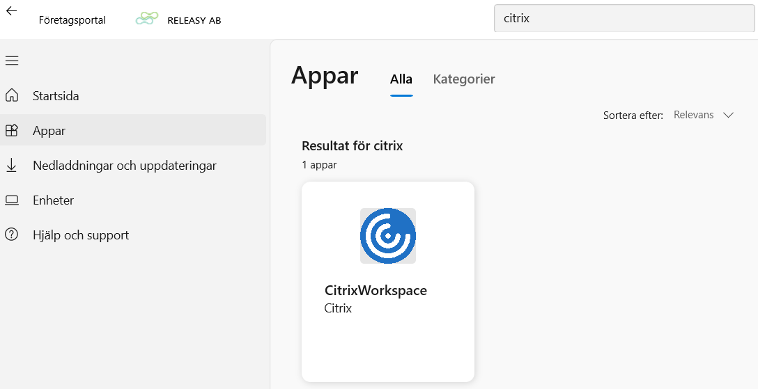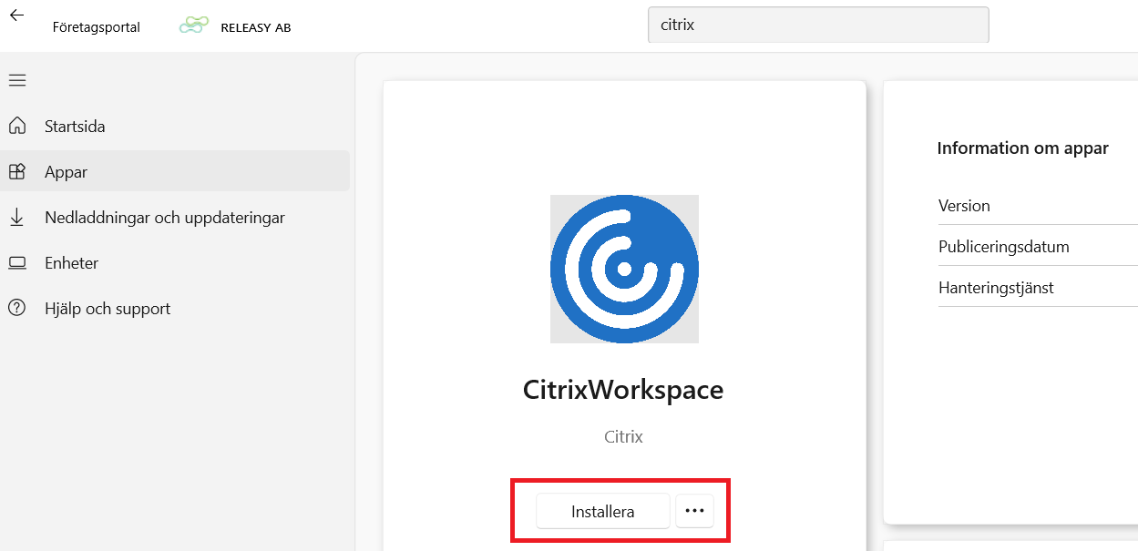 - Steg 1: Installera Citrix i Företagsportal, sedan öppna valfritt program i ELIN och gå till Nerladdningar