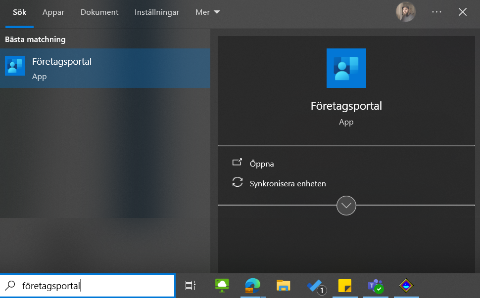 - Steg 1: Sök i startmenyn på Företagsportalen och tryck på Öppna